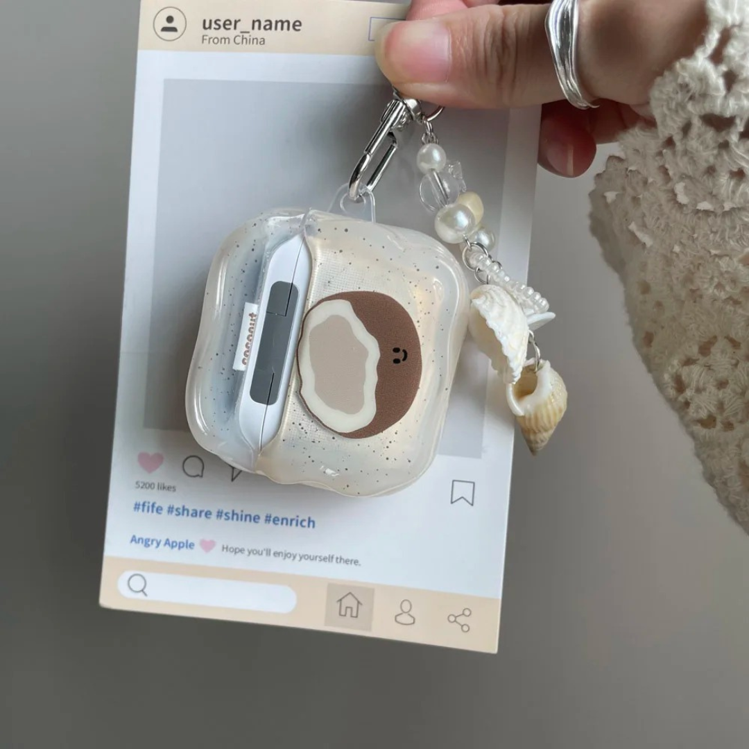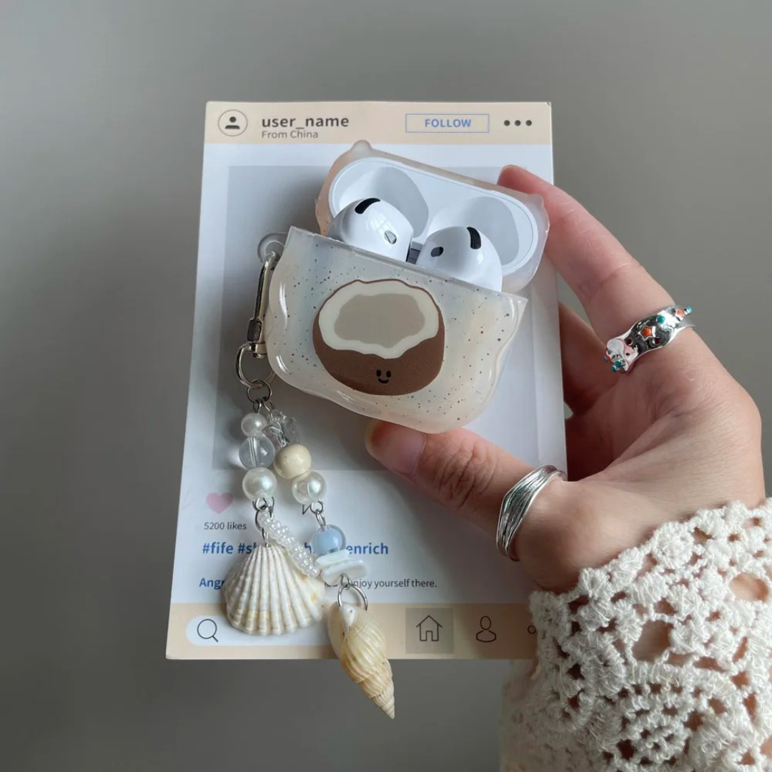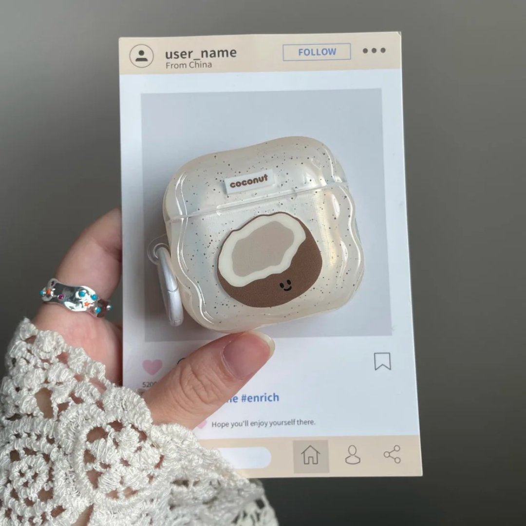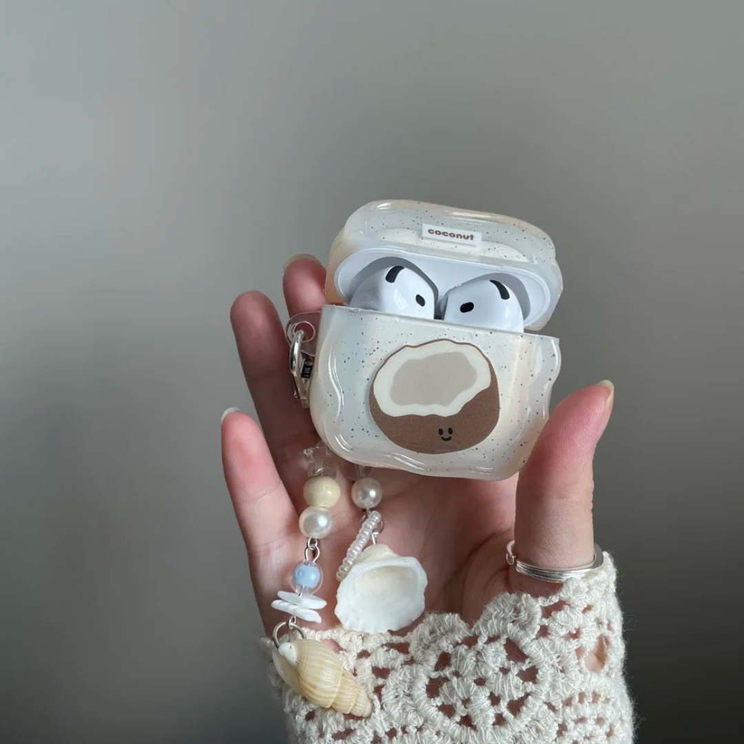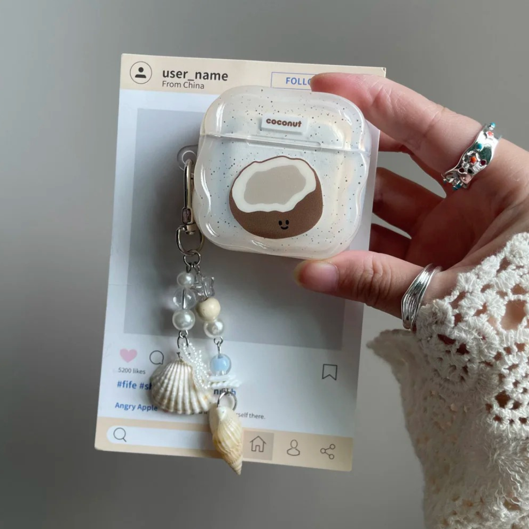 🥥 Adorable Coconut Design: Featuring a smiling half-coconut illustration on a speckled clear background, this AirPods case brings a fun, tropical vibe to your everyday accessories.