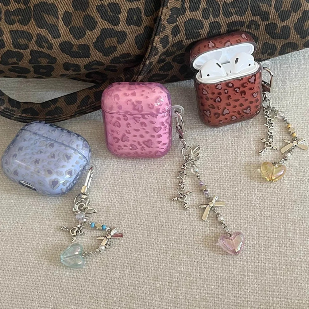 Turn your AirPods into a stylish accessory with these Glossy Leopard Print AirPods Cases, available in brown, pink, and lavender.