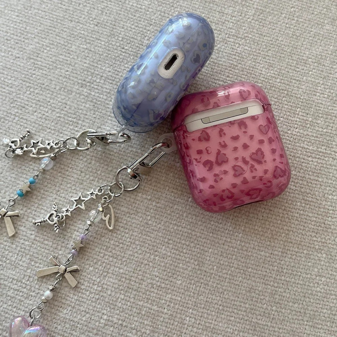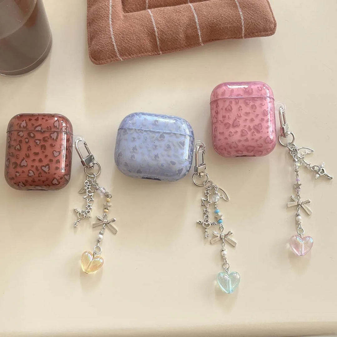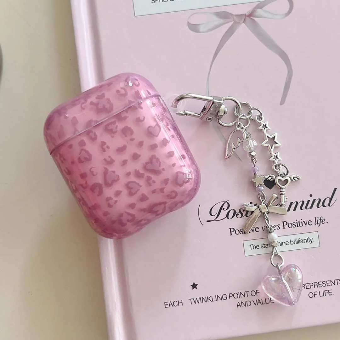 Each case comes with a beautiful charm keychain featuring hearts, stars, bows, and angel details β perfect for adding personality to your everyday look.