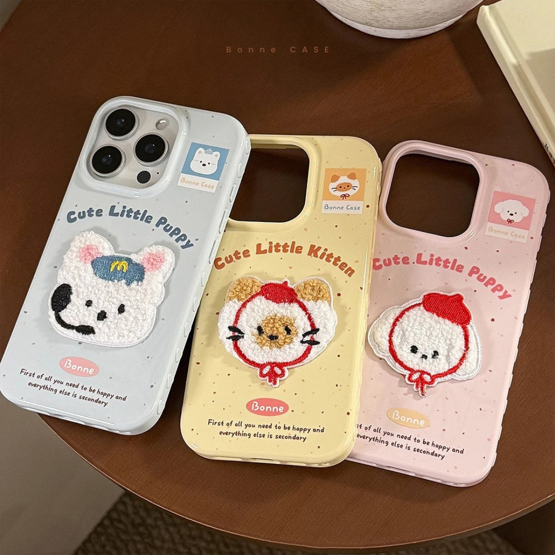 Bring warmth and charm to your phone with our Cute Little Puppy & Kitten Embroidered iPhone Case Collection!