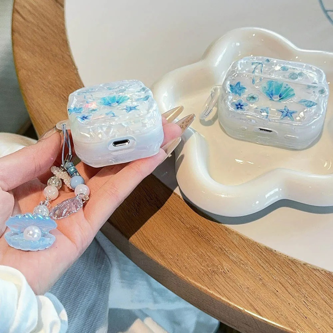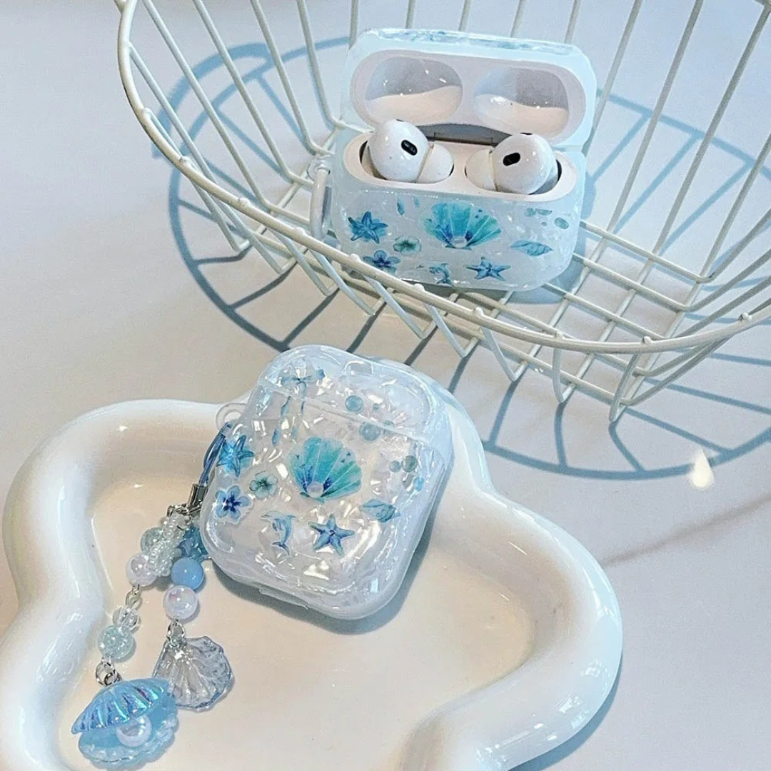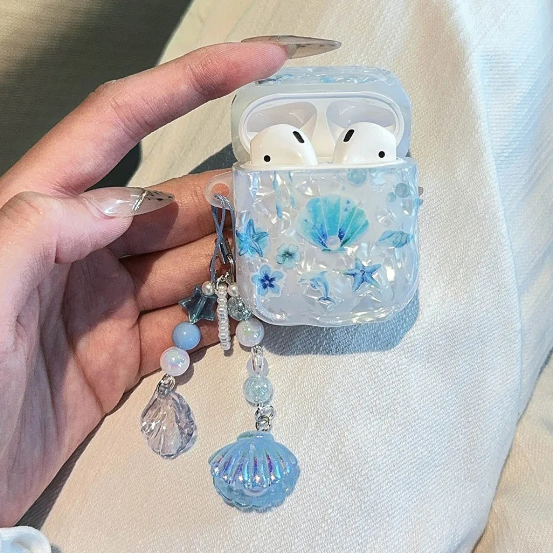 💙 Optional Beachy Charm Accessory: Comes with a matching charm set decorated with pearls, beads, and mini shells—perfect for adding personality and coastal vibes to your AirPods.