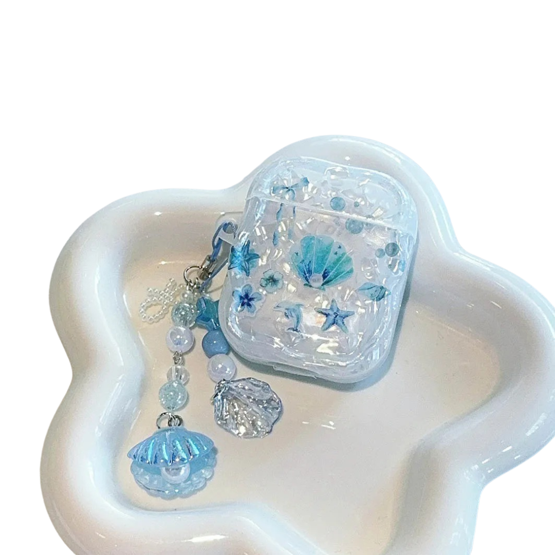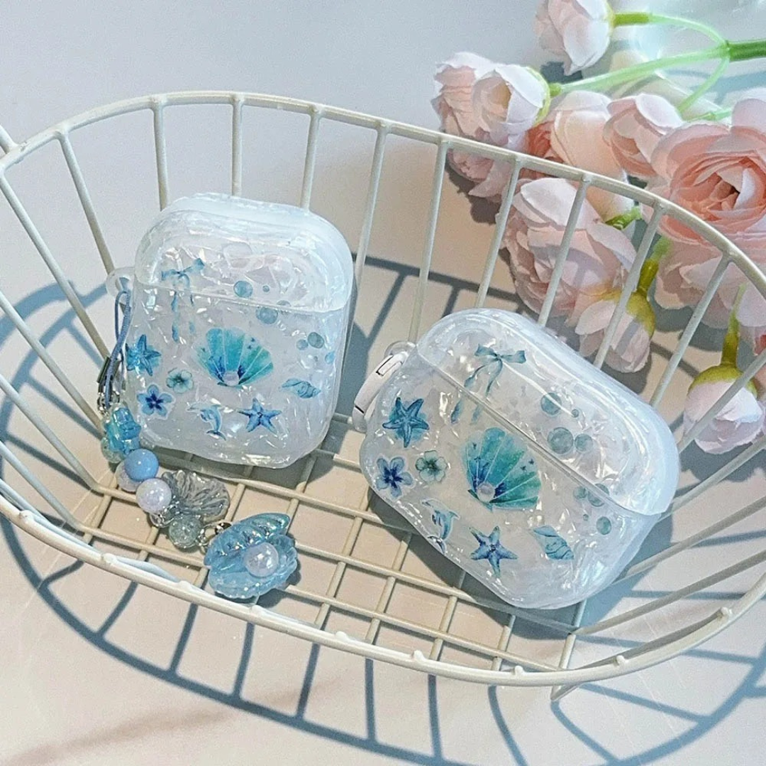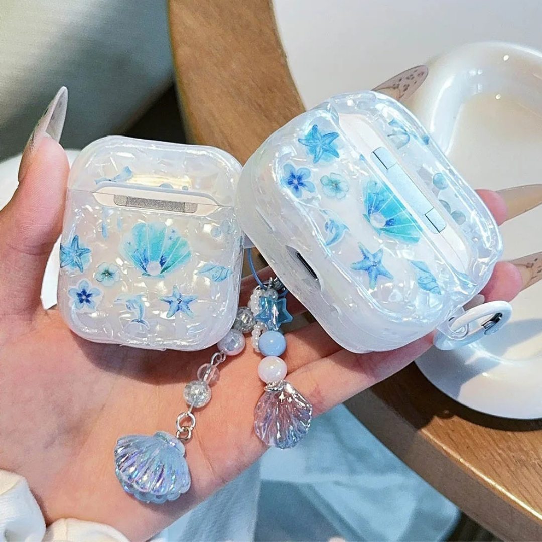 💙 Optional Beachy Charm Accessory: Comes with a matching charm set decorated with pearls, beads, and mini shells—perfect for adding personality and coastal vibes to your AirPods.