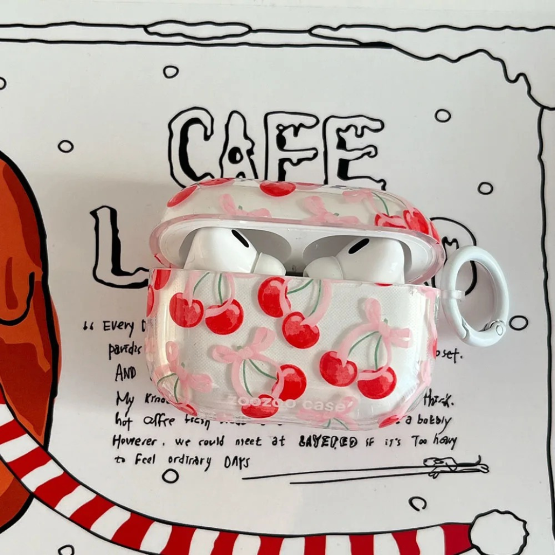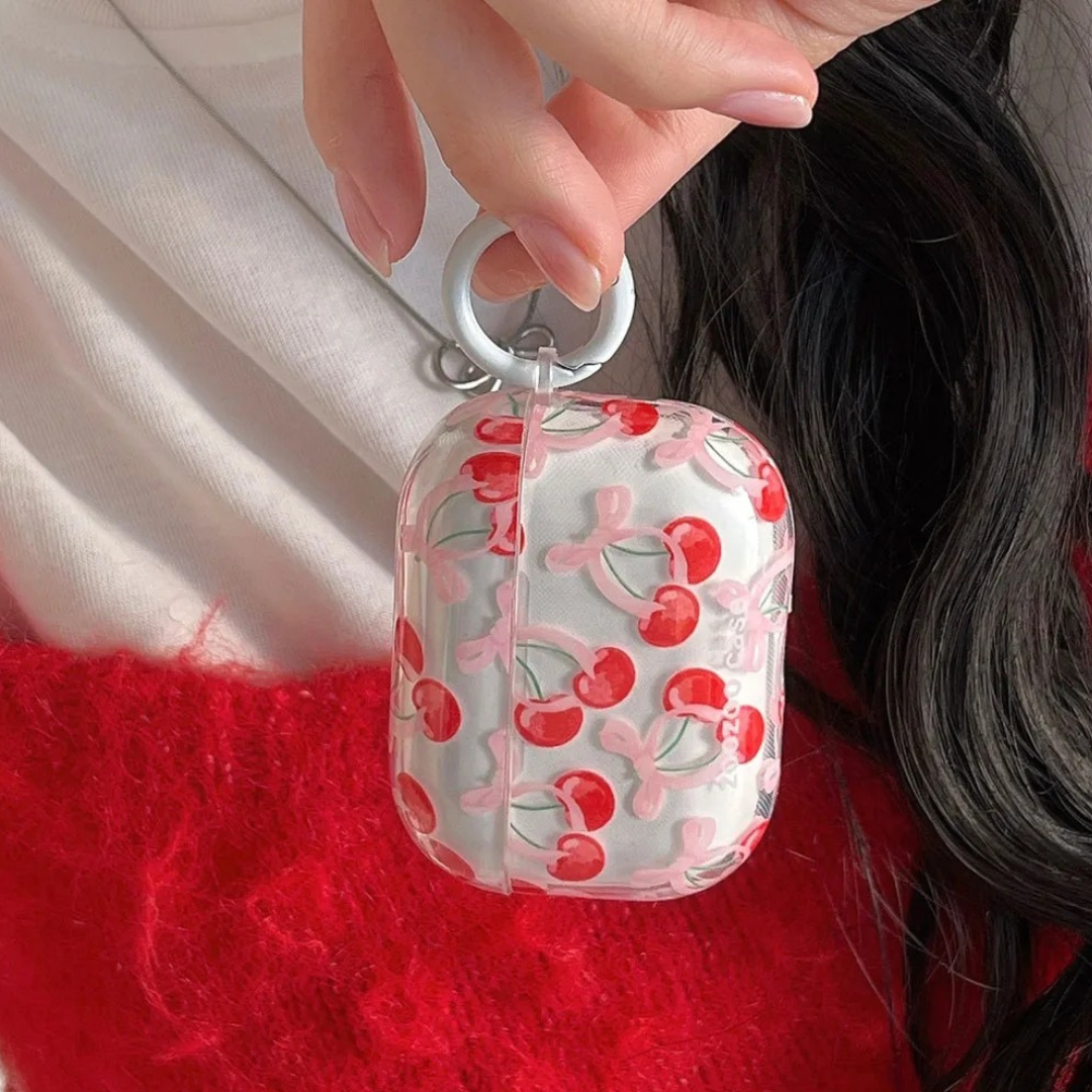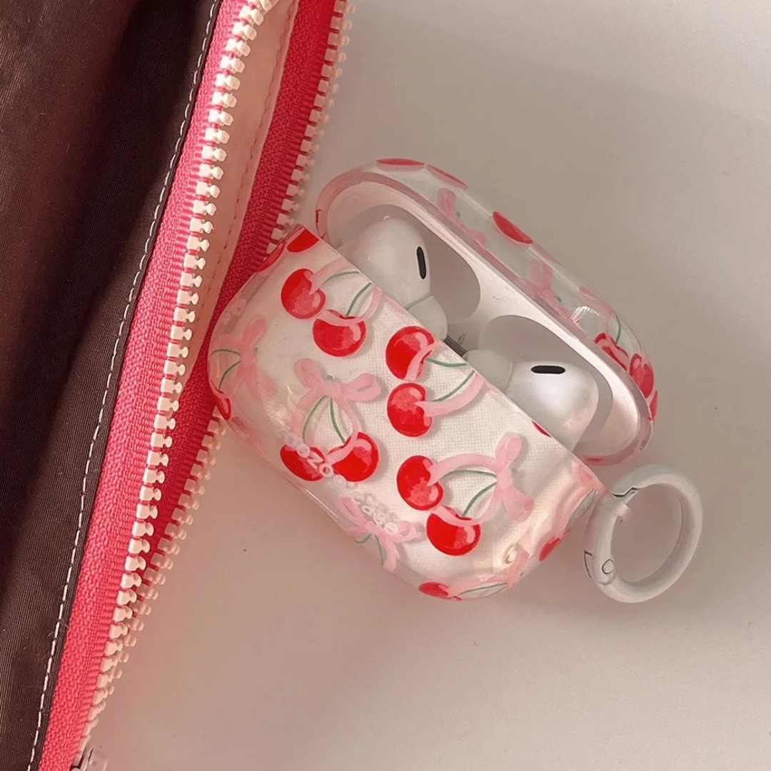 ๐ Sweet & Vibrant Cherry Pattern: Covered in bright red cherries with soft pink ribbon accents, this AirPods case brings a playful, adorable look to your everyday accessories.