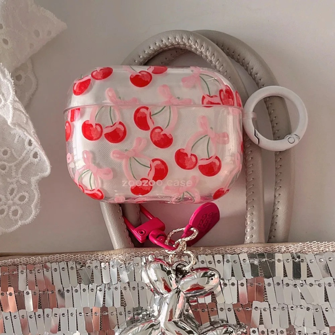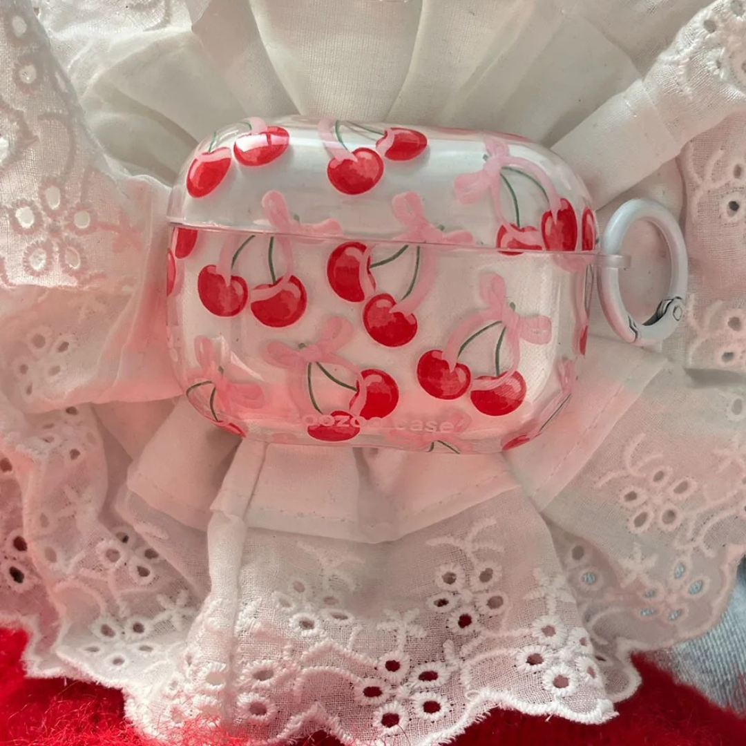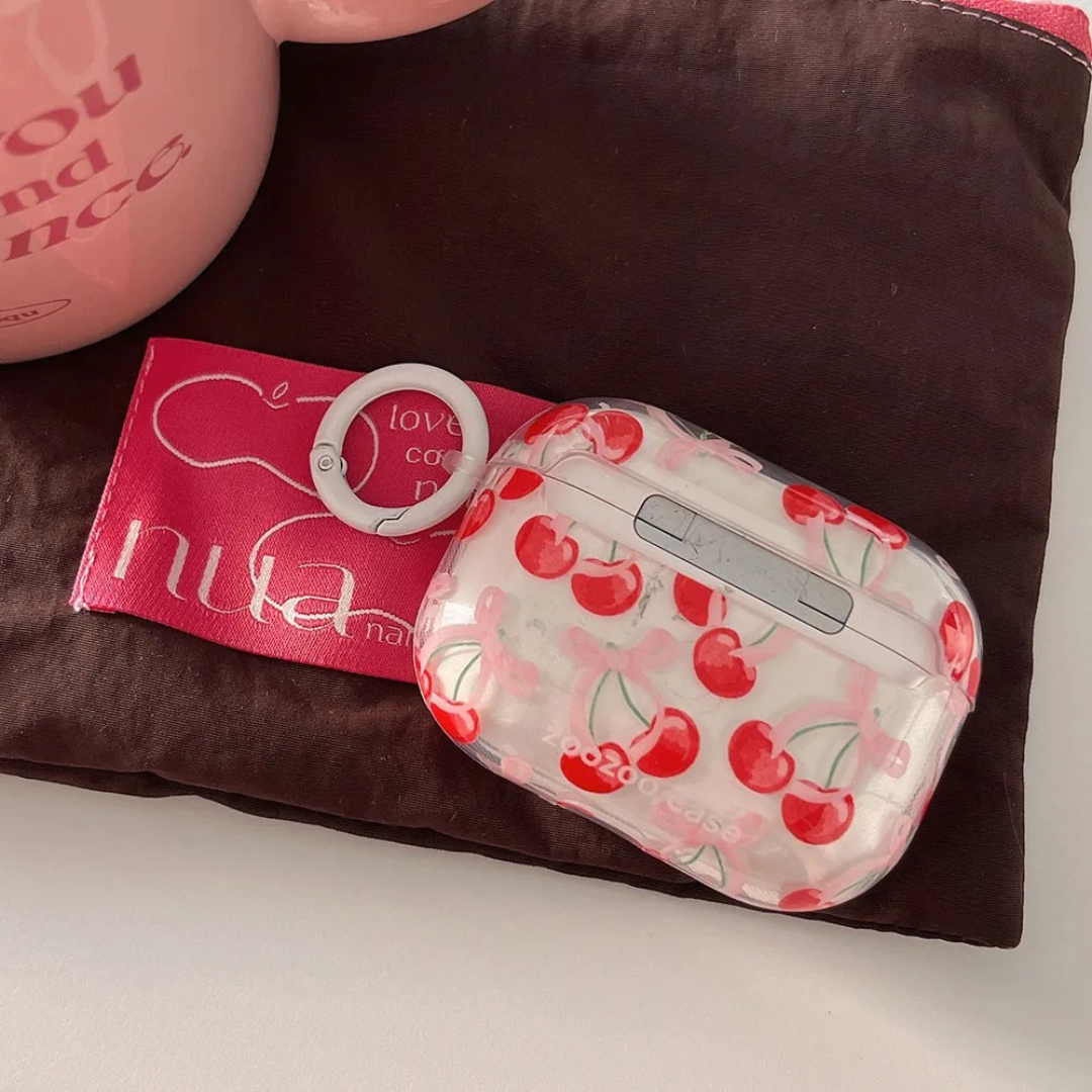 ๐ Sweet & Vibrant Cherry Pattern: Covered in bright red cherries with soft pink ribbon accents, this AirPods case brings a playful, adorable look to your everyday accessories.
