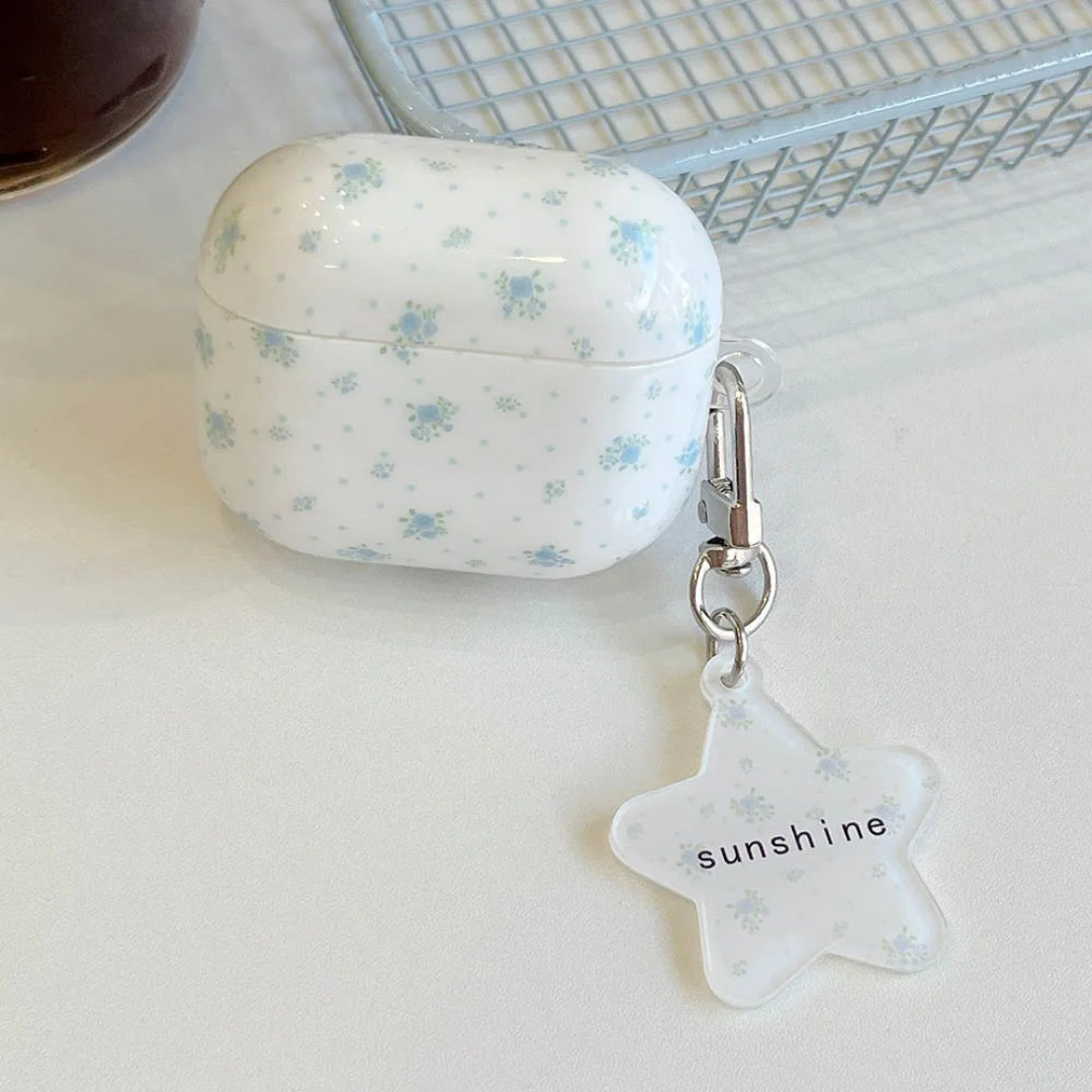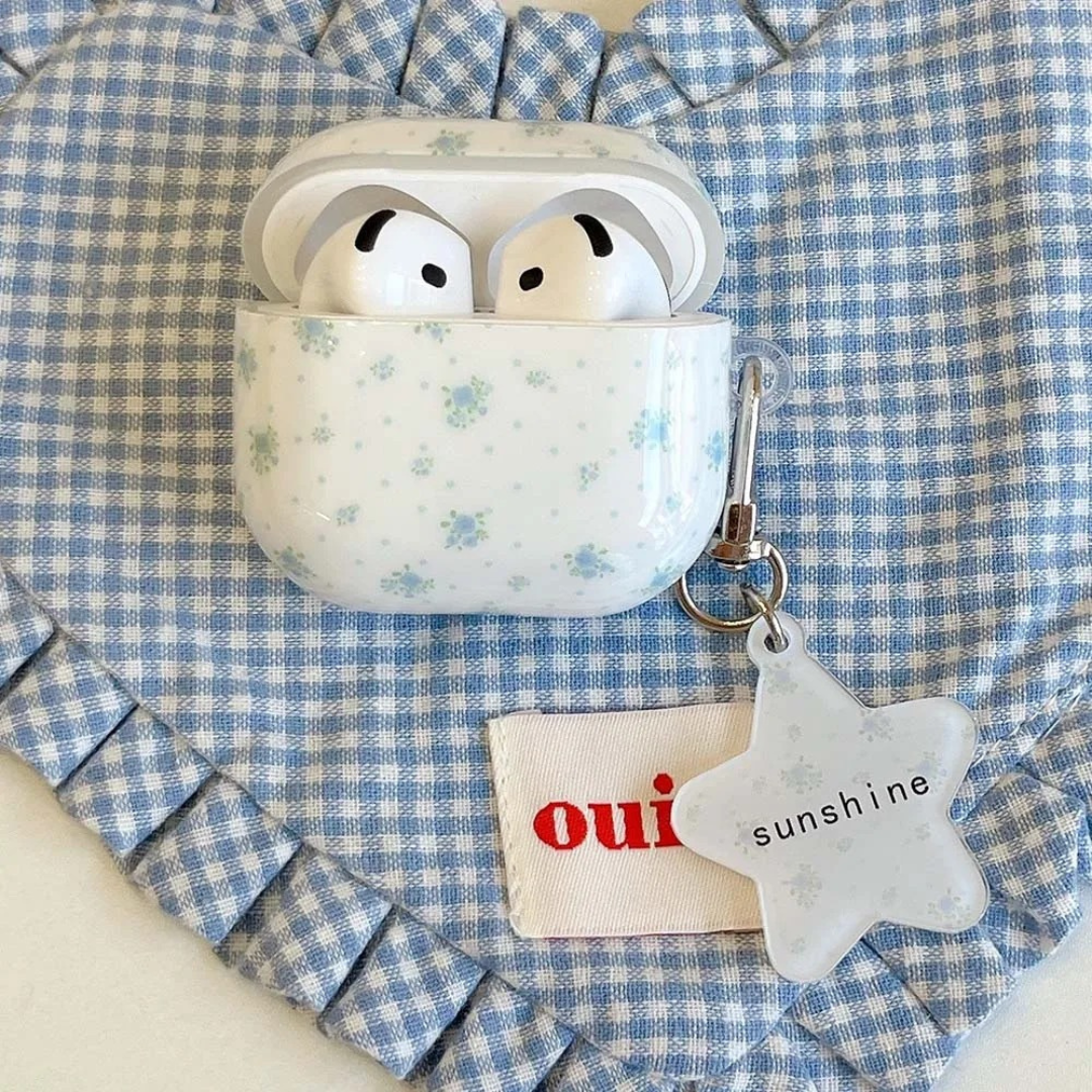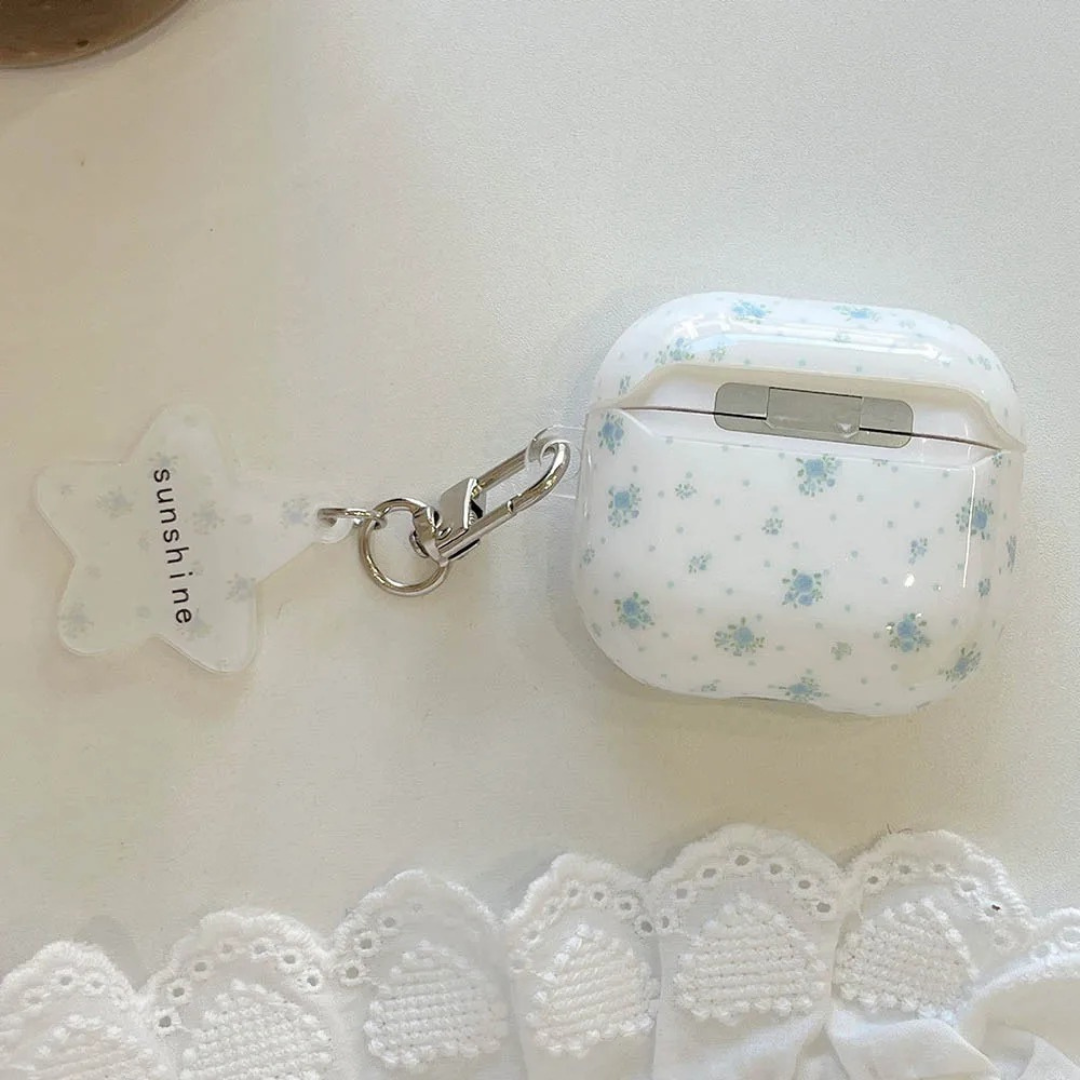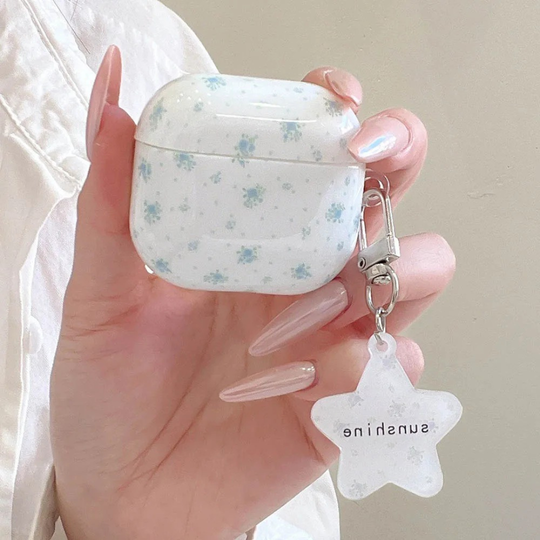 🌿 Delicate Floral Print: Featuring tiny blue flowers scattered across a creamy white background, this AirPods case gives off a soft, vintage-inspired charm.